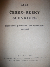 Česko-ruský slovníček, nezbytná pomůcka při vyučování ruštině